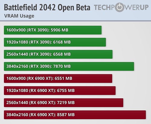 Начать стоит с потребления видеопамяти, которое редко переваливало за 10 GB даже при разрешении 4К. Большинство карт с объёмом видеобуфера в 8-10 GB смогут без проблем запустить игру в любом разрешении и с любыми настройками графики. Единственным препятствием для RTX 3080 может стать максимальный пресет графики в 4К с включённой трассировкой лучей, который потребляет более 11 GB VRAM.
