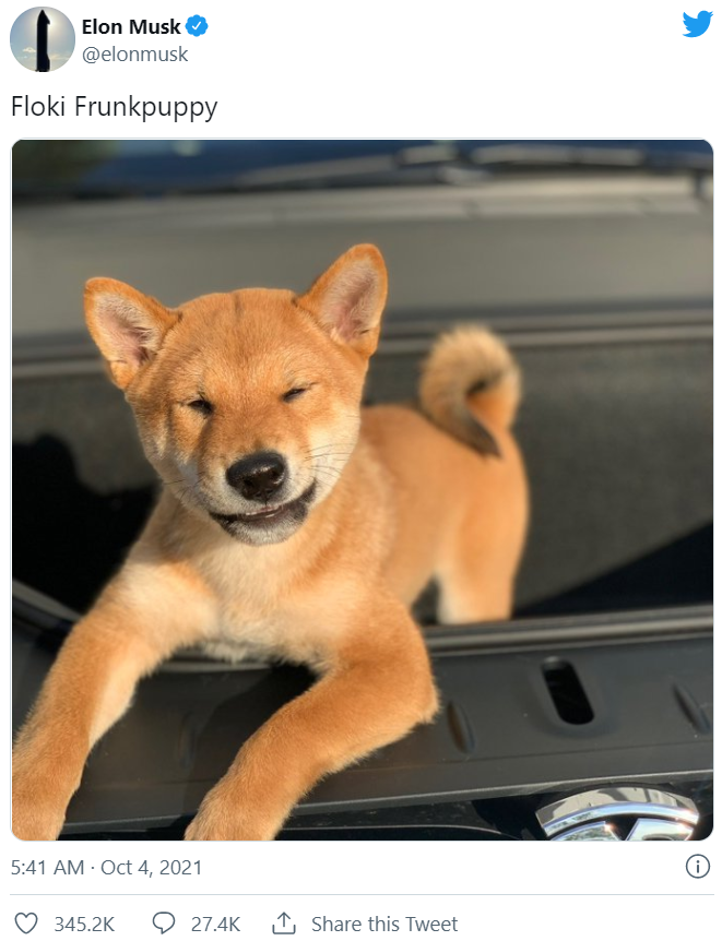 Менее популярная монета Shiba Inu, торгующаяся под кодом SHIB, выросла более чем на 200% после того, как основатель и генеральный директор Tesla Илон Маск косвенно упомянул её в сообщении в Twitter, содержащем изображение собаки соответствующей породы. Эта валюта с общей рыночной стоимостью более 10 миллиардов долларов является 20-й по величине криптовалютой в мире.