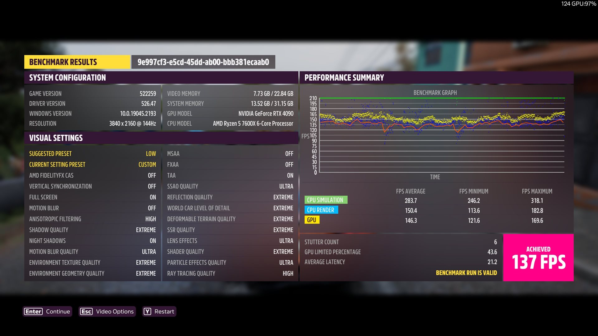 Согласно представленным данным, в разрешении 4K в содружестве с настольным процессором AMD Ryzen 5 7600X игровой видеоадаптер NVIDIA GeForce RTX 4080 продемонстрировал результат в 117 fps, уступив GeForce RTX 4090, обеспечившей показатель в 137 fps, около 14.6 %.