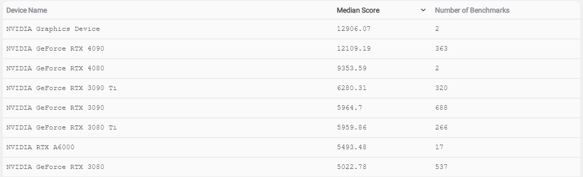 Согласно недавно появившимся данным Geekbench, грядущая GeForce RTX 4080 была протестирована в трёх различных графических API, включая Vulkan, OpenCL и CUDA. Таким образом появилась возможность сравнить результаты с известными графическими процессорами, такими как RTX 3080 или 3090 Ti.