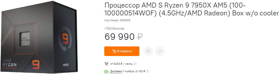 Ryzen 9 7900X получил немного меньшее снижение цены, хотя и значительное. 12-ядерный чип, который раньше продавался по цене 598 долларов, теперь предлагается по цене 459 долларов. Новый ценник на 23% ниже оригинального и на 16% ниже цен в США.