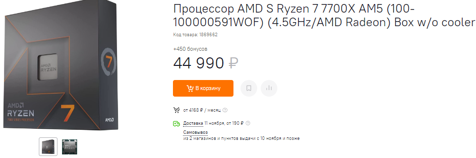 Ryzen 7 7700X стоит на 23% меньше. Чип, который раньше продавался за 417 долларов, продается за 320 долларов. Что на 20% дешевле, чем в США. Стоимость Ryzen 5 7600X снизилась на 25%, с 313 до 236 долларов, что на 21% дешевле американской цены.