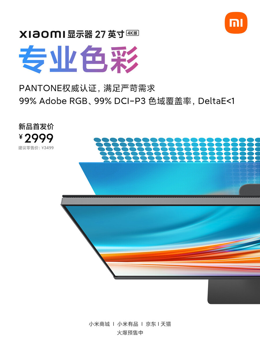 Новый 27-дюймовый монитор Xiaomi 4K больше и имеет более высокое разрешение, чем предыдущая модель XMMNT245HF2, представленная в ноябре, имеющая 24,5-дюймовый дисплей с разрешением 1080p и частотой обновления 240 Гц. Хотя новый 27-дюймовый 4K-монитор Xiaomi не имеет высокую частоту обновления, он может похвастаться превосходным охватом цветового пространства и высокую точность цветопередачи. А именно, монитор предлагает 99% охват цветовых пространств Adobe RGB и DCI P3, а также отклонения DeltaE менее 1. Xiaomi утверждает, что монитор также сертифицирован PANTONE. Следовательно, 27-дюймовая новинка Xiaomi 4K должна иметь достаточно точную цветопередачу для профессионального редактирования фото и видео.