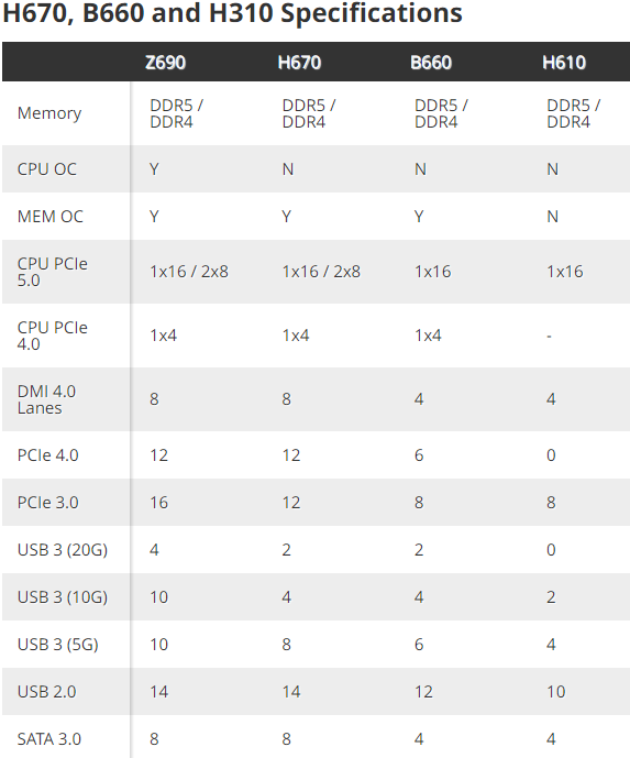 Что касается SATA III, то Z690 и H670 имеют до восьми таких портов, а B660 и H610 - до четырех портов. Думается, что обычным пользователям будет достаточно четырех портов SATA III, если они только не планируют организовывать RAID-массивы.