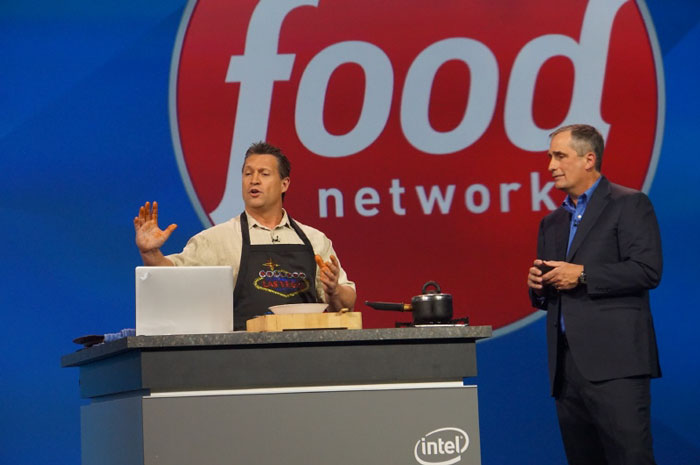 Из более приземлённых проектов отметим работу Intel с разработчиками кухонной техники, которой можно управлять жестами. Пока компания демонстрирует управление жестами ноутбука с RealSense. На кухне руки обычно запачканы, и управление жестами поможет избежать заляпывания экрана или клавиатуры при просмотре рецепта или урока по приготовлению блюда.