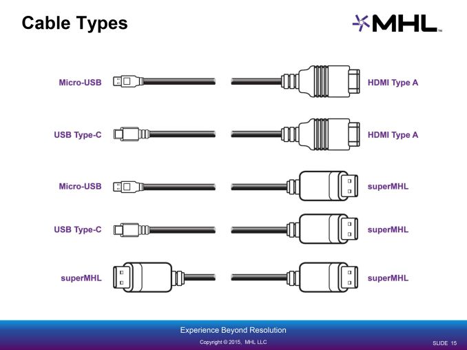 В 2010 году родился стандарт MHL (Mobile High-Definition Link), объединяющий функциональность интерфейсов HDMI и micro-USB. MHL используется для подключения мобильных устройств вроде смартфонов и планшетов к телевизорам и мониторам, причём стандарт допускает не только передачу видео, но и питания.