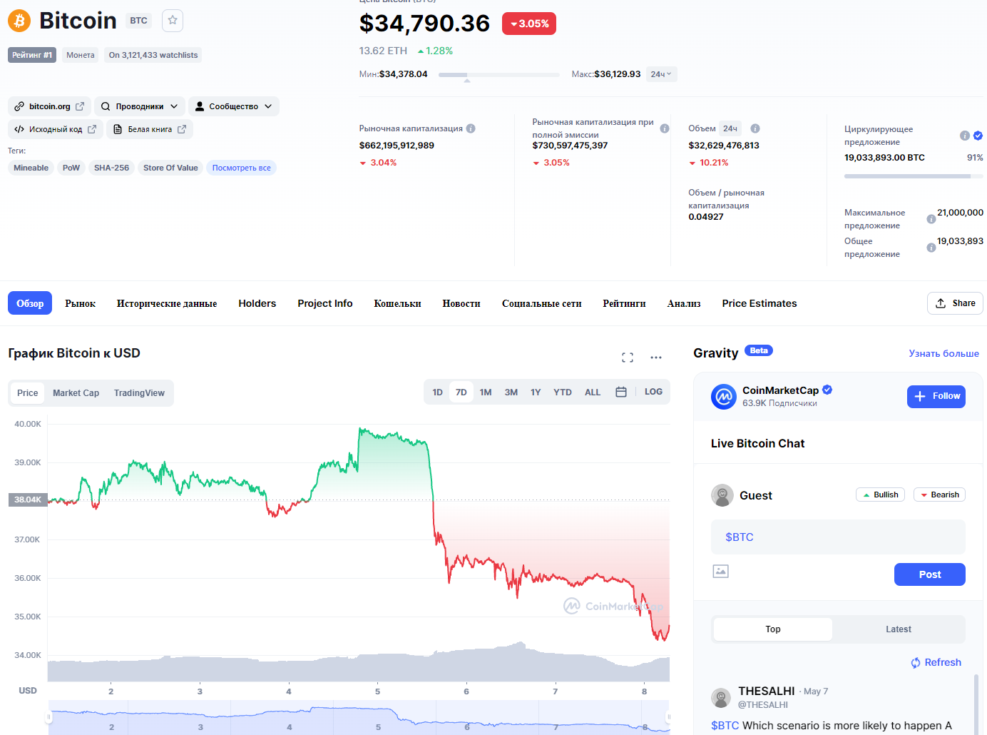 Эксперты справедливо полагают, что это не могло не сказаться на курсе Биткоина, которые сильно зависит от американского фондового рынка. В то же время, сегодня появились любопытные факты, свидетельствующие о том, что майнеры обеспокоены происходящим на рынке. Как сообщается, 5 и 6 мая неизвестные перевели на несколько бирж 11 760 Биткоинов. По курсу на тот момент это было 430 миллионов долларов. Сумма не такая большая, ведь иногда Киты выводят и больше, но в данном случае интересно происхождение этих монет. Дело в том, что подавляющее большинство Биткоинов, которых есть на биржах, это старые монеты, добытые много лет назад. Ну а все 11 760 ВТС – это новенькие токены, добытые за последние три месяца. Получается, что один или несколько крупных майнеров решили зафиксировать прибыль, опасаясь дальнейшего падения рынка. Подобное не могло пройти незаметным мимо трейдеров, что и вместе с нестабильностью глобальной экономики стало одной из причин резкого обвала криптовалюты.