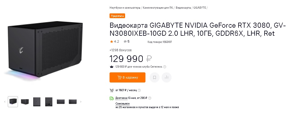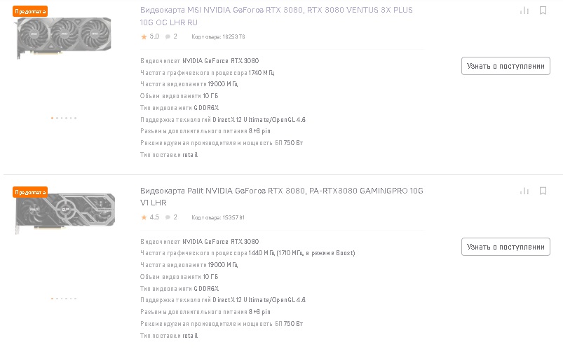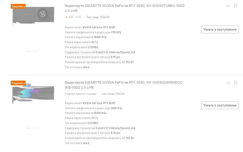 И вот мы имеем полный обход этой самой блокировки, дамбу, можно сказать, прорвало, буквально до этой самой новости в интернет магазине были доступны различные вариации той же самой RTX 3080 10 GB, имелась масса различных вендоров: Palit, MSI, Gigabyte.