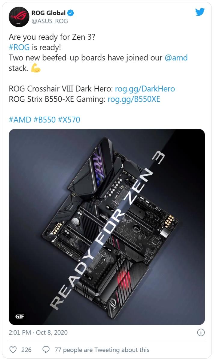 Марка ASUS, например, уже рекламирует материнские платы ROG Crosshair VIII Dark Hero (X570) и ROG Strix B550-XE Gaming (B550), которые «готовы к AMD Zen 3», как сообщает баннер в социальной сети. Компания MSI для своей платы MEG B550 Unify-X на основе набора логики B550 декларирует поддержку режима работы памяти DDR4-5800, а компания Biostar замахивается на режим DDR4-6000 через обновление микрокода!