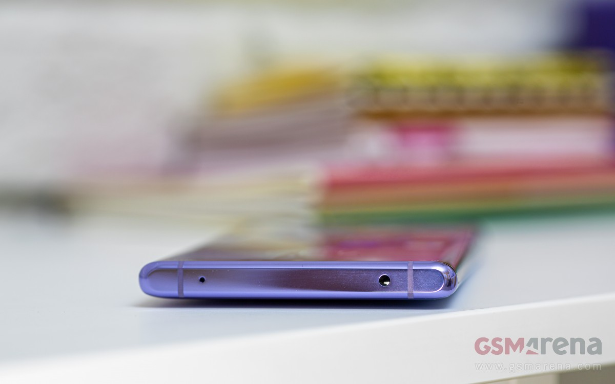 Флагман десятой серии оборудован дисплеем Super AMOLED. 90-герцовая матрица поддерживает HDR10+ и имеет диагональ 6,67 дюйма. Разрешение составило 1080 точек по нижней стороне. Экран смартфона отличается изогнутыми гранями, а вверху слева находится небольшое отверстие под 20-Мп селфи-камеру. В дисплей интегрирован дактилоскопический сенсор.
