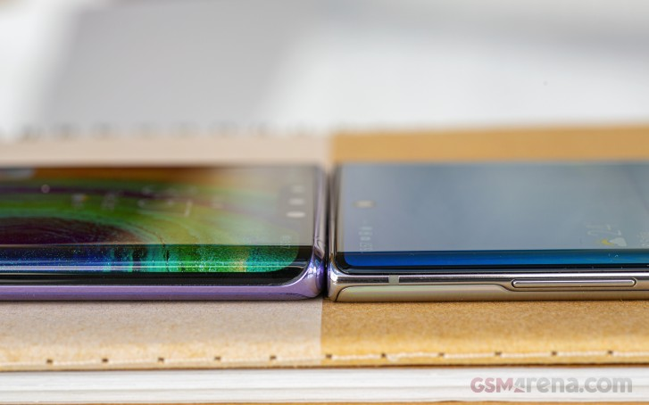 Дисплей построен на базе матрицы OLED с поддержкой расширенного динамического диапазона. В связи с тем, что матрица заходит на боковые торцы, производитель отказался от физических клавиш управления громкостью, а кнопка питания сместилась к тыльной грани. Разъёма для наушников в смартфоне тоже нет, но уже по иной причине. Зато модель может похвастаться защитой от воды в соответствии с требованиями стандарта IP68.