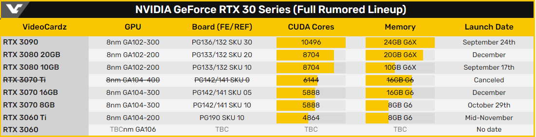 с расширенным до 16 Gb видеобуфером. Помимо этого апгрейд получит и старшая модель RTX 3080, которая по данным источника получит уже 20 Gb памяти.