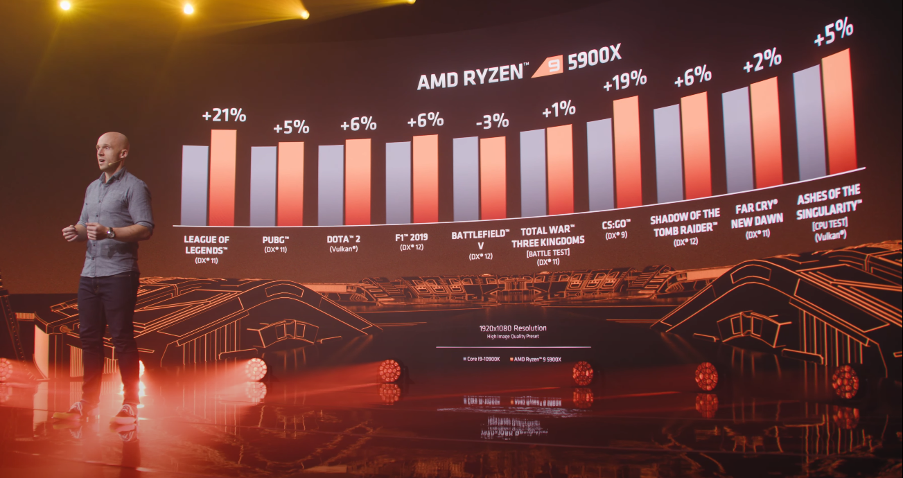 Похоже, с выходом настольных процессоров AMD Ryzen 5000 гегемония Intel в области компьютерных игр подходит к концу, по крайней мере, об этом говорят результаты тестов, произведённых специалистами «красной команды».