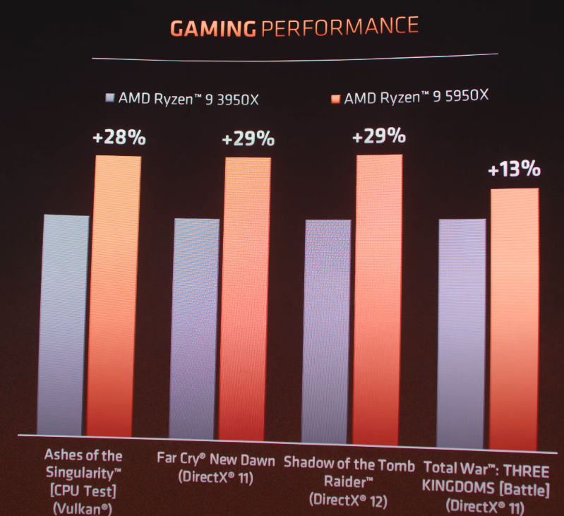 В сравнении с моделью прошлого поколения, Ryzen 9 3900XT, новый продукт выглядит ещё более выгодно, опережая своего предшественника в ряде игровых приложений в среднем на 26 % и достигая наибольшего преимущества в Counter-Strike: Global Offensive (+46 %) и League of Legends (+50 %).