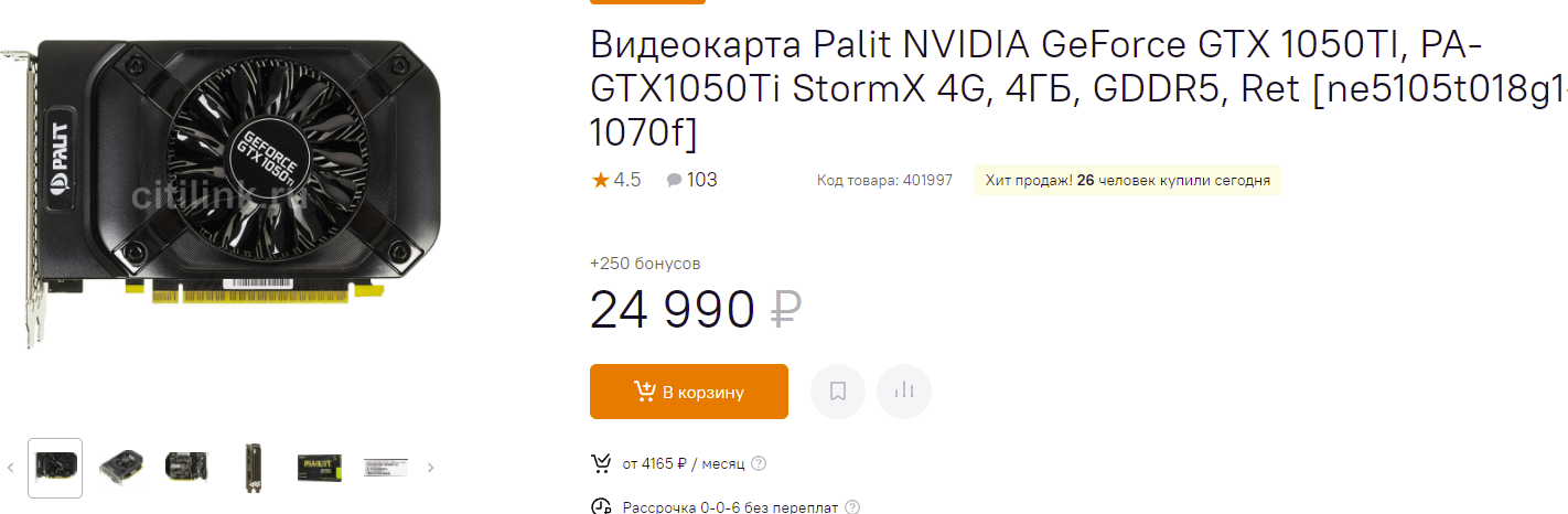 Дефицит видеокарт вызвал отложенный спрос среди миллионов геймеров по всему миру. Но праздники на то и созданы, чтобы люди тратили деньги на развлечения. Поскольку мощные игровые модели стоят далеко за 100 000 рублей, многие пользователи начали пересматривать свои планы, а в результате мы видим, как российские геймеры вынуждены покупать медленную GeForce GT 1030, поскольку игровые модели стоят десятки тысяч рублей. Одновременно с этим уже больше месяца геймеры массово раскупают относительно недорогую GeForce GTX 1050 Ti. Могло показаться, что бюджетные модели будут в наличии сколько угодно долго, но в реальности сегодня мы видим, что российские покупатели разобрали все относительно недорогие карты.