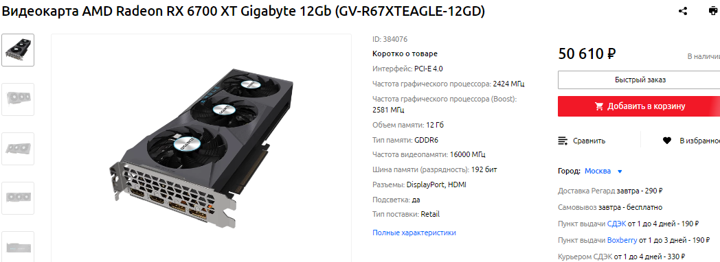 Radeon RX 6700 XT выглядит неплохо, но в последнее время столкнулась с ожесточённой конкуренцией в этом ценовом сегменте, ведь на несколько тысяч рублей дешевле есть GeForce RTX 3060 Ti. Поскольку между видеокартами полный паритет по скорости, то в пользу AMD говорит запас видеопамяти +4Гб и более эффективная система энергопотребления. Как вы уже поняли, большинство геймеров глухо к подобным аргументам, ну а мы советуем присмотреться к Radeon RX 6700 XT. Требования к видеокартам увеличиваются, хотя никто не может обещать, что ваши 12 Гб видеопамяти действительно будут востребованы.
