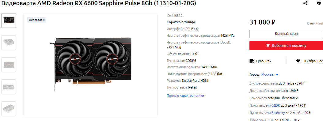 Несмотря на то, что самой популярной видеокартой на рынке является GeForce RTX 3050, более интересным выбором остаётся Radeon RX 6600. В пользу последней говорит высокая производительность, что позволяет получить дополнительный прирост количества кадров в самых требовательных играх. Если вы слышали нарекания в сторону Sapphire, то можете не сомневаться, что в данном случае Radeon RX 6600 получила даже слишком мощную систему охлаждения. Внутри эффективный графический чип со 128-битной шиной, поэтому о замене блока питания можно не думать.