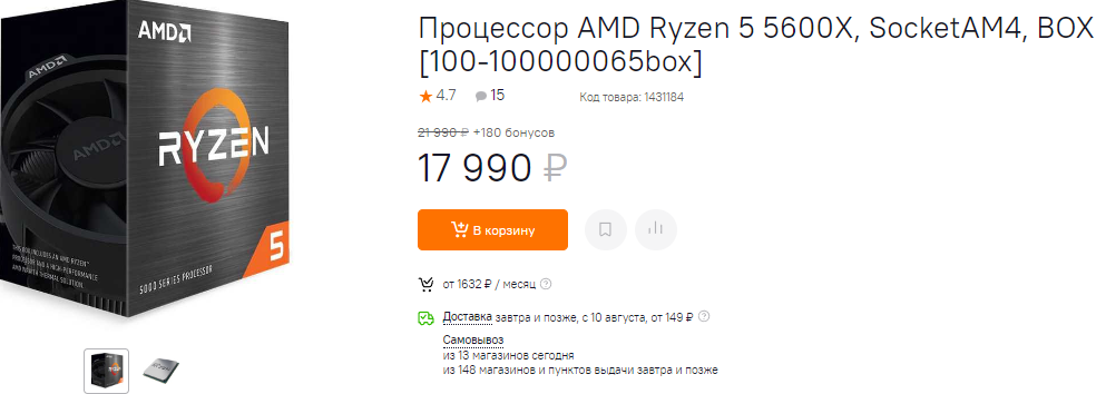 За последнюю неделю наметилось снижение цен на процессоры в целом. Именно поэтому Ryzen 5 5600X стоит 18 тысяч рублей. Перед вами камень, который разошёлся огромным тиражом и стал настоящим бестселлером. Его можно разгонять, собрав скоростной компьютер за 150 000 рублей, а можно сэкономить, усилив системный блок видеокартой. Всё зависит от ваших потребностей, но мы рекомендуем не экономить на материнской плате. Помните, что сегодня сидеть без поддержки PCIe 4.0 глупо. Вы лишаете себя удовольствия опробовать скоростные твердотельные накопители нового поколения.