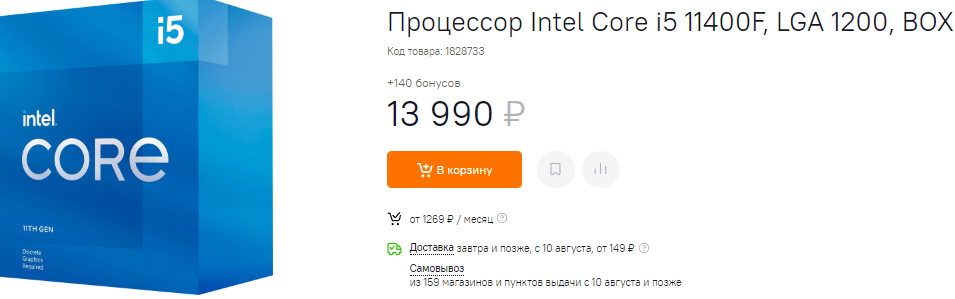 За 14 тысяч доступен Core i5-11400F. Здесь скорость немного ниже, чем у Core i5-12400, но есть приятный бонус в виде штатного кулера. Мало того, материнские платы для этого камня дешевле, а финальную производительность всё равно определит видеокарта. Получается, что вы выигрываете и по деньгам, и по скорости. Один из самых перспективных камней нашей подборки.