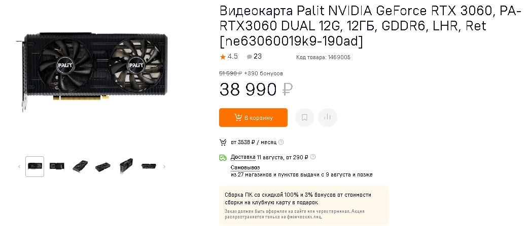 Ну и в самом низу ценовой цепочки расположилась GeForce RTX 3060. Запаса производительности здесь нет, но зато есть шильдик NVIDIA и самая низкая цена из всех перечисленных выше моделей. Прямо сегодня настройки в играх можно оставить на высокие, а через год потребуется некоторая коррекция. Многое будет зависеть от развития игровых движков, но на этот счёт информации крайне мало, ведь в разработке множество проектов от ведущих студий. Если вы заметили, то за последний месяц данная модель умудрилась подешеветь на 30%, что стало настоящим рекордом и приятной неожиданностью для геймеров.