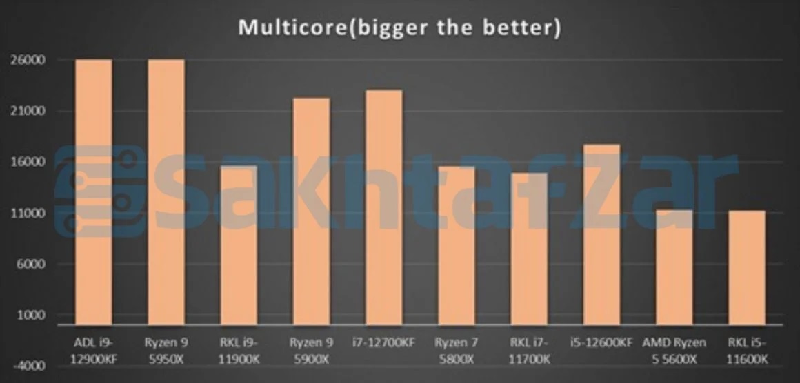 В преддверии скорого анонса настольных процессоров Intel 12-го поколения в сети появляется всё больше подробностей касательно технических характеристик и уровня производительности будущих новинок: так, совсем недавно стало известно о возможностях топового чипсета Z690, а уже сейчас «сетевой детектив» momomo_us решил поделиться с компьютерной общественностью ссылкой на сайт Sakhtafzarmag, в распоряжении которого оказались данные, приоткрывающие завесу тайны над быстродействием новых моделей семейства Alder Lake-S в ряде приложений.