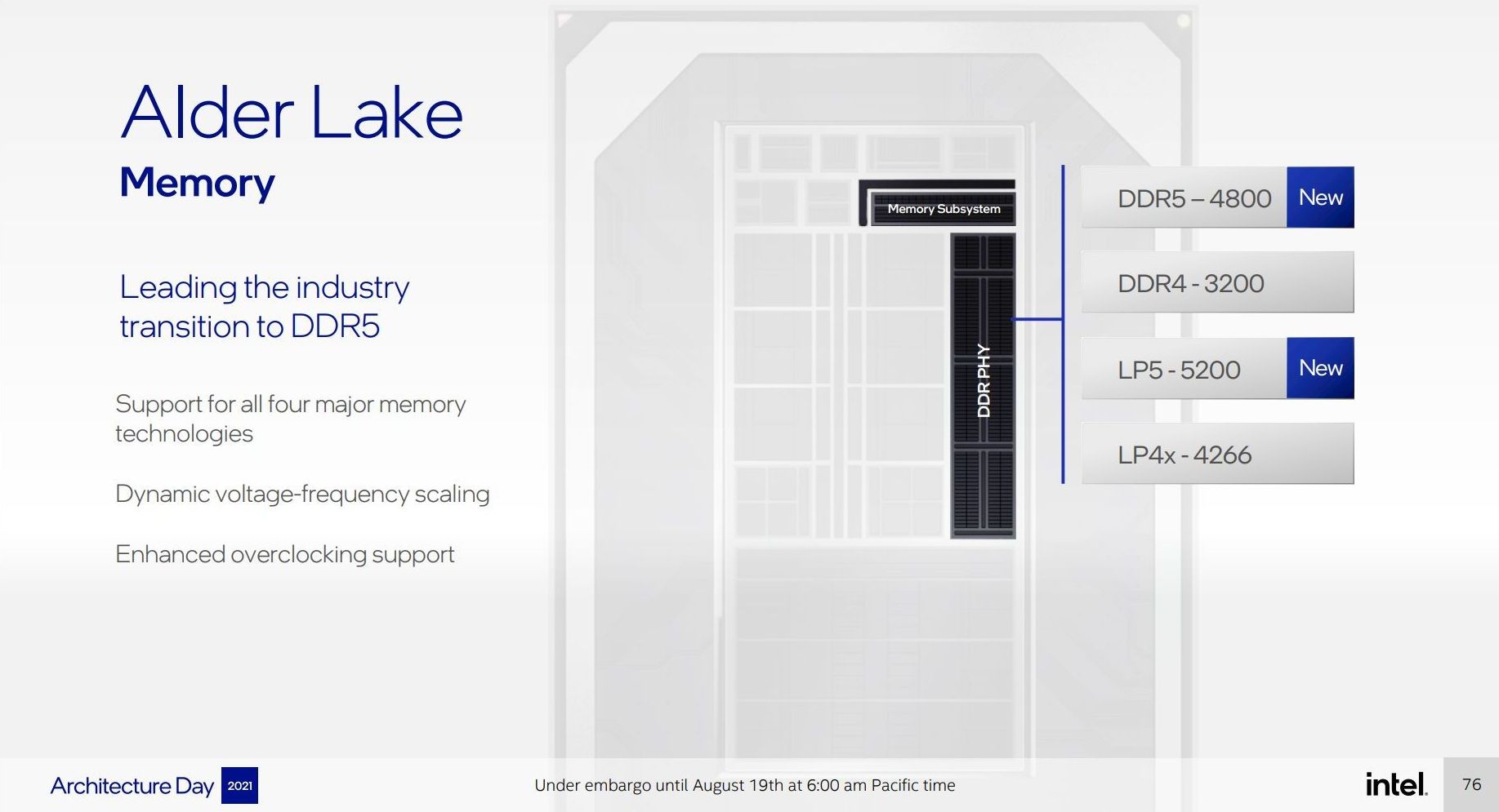 ЦП 12-го поколения будет поддерживать память DDR5 или DDR4 в двухканальном режиме. Эта диаграмма фактически подтверждает слайд (смотрите ниже), показанный на празднике Дня архитектуры, на котором упоминалась поддержка DDR5-4800 и DDR4-3200.
