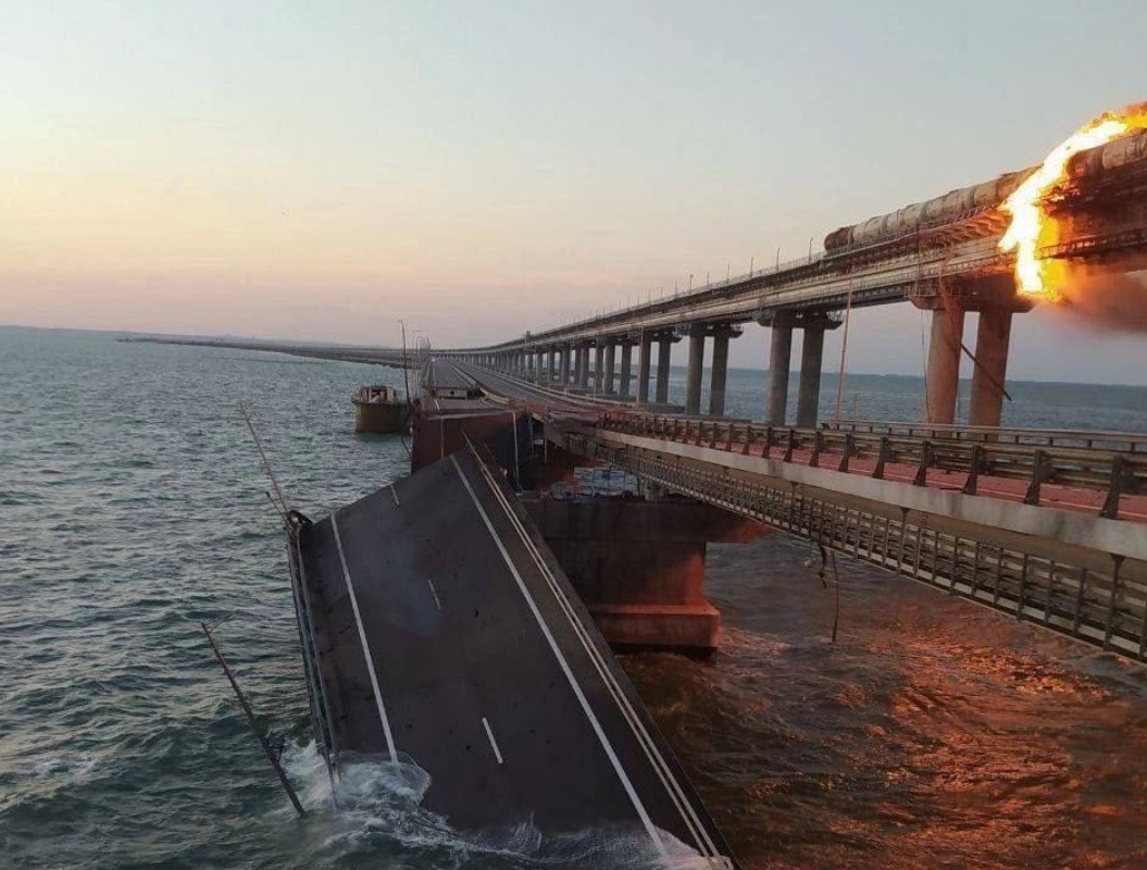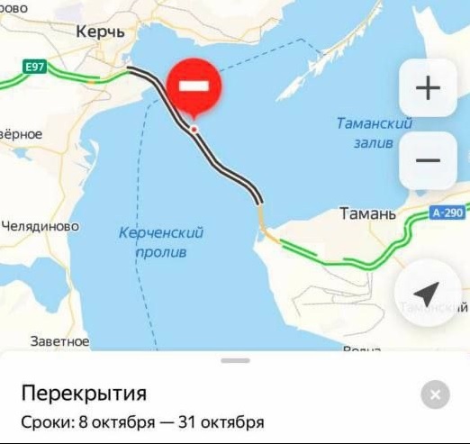 В субботу утром, против Российской Федерации был совершен чудовищный террористический акт. Неизвестные террористы взорвали мост через Керченский пролив, в результате пострадали две полосы движения, а два пролета моста полностью обрушились. Огонь перекинулся на железнодорожную часть моста, так как там неудачно проходил состав с горюче-смазочными материалами, в сторону Крымского полуострова. Загорелись семь топливных цистерн железнодорожного состава. Официально Киев не берет на себя ответственность за происшедшие, однако глава офиса президента Украины Михаил Подоляк в своем Твиттере (запрещенная на территории РФ Соцсеть) написал недвусмысленное выражение - «Крым, мост, начало». Да и в Крымской администрации не сомневаются, что мост и железнодорожное полотно повредили "украинские вандалы". Движение по мосту было оперативно остановлено, а на подъезде к нему развернули пункты горячего питания и обогрева для водителей. Был подготовлен запуск паромной переправы через пролив, а сервис Яндекс Карты информировал о прекращении движения по мосту до 31 октября.