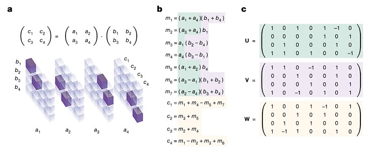 В частности, AlphaTensor обнаружил 47-шаговое решение парного матричного умножения 4 x 4, которое улучшает известное 49-шаговое решение, найденное в 1969 году. Он также сократил на пару шагов парное матричное умножение 5 x 5, сократив 98 шагов до 96.