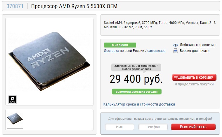 Таким образом, стоимость 8-ядерной 16-поточной модели от Intel практически сравнялась с ценой своего оппонента из стана AMD в лице Ryzen 5 5600X, имеющего в своём распоряжении всего лишь 6 ядер/12 потоков с частотной формулой 3,7/4,6 ГГц, но способного успешно противостоять своему конкуренту в ряде популярных игр, который можно приобрести за 29400 рублей.