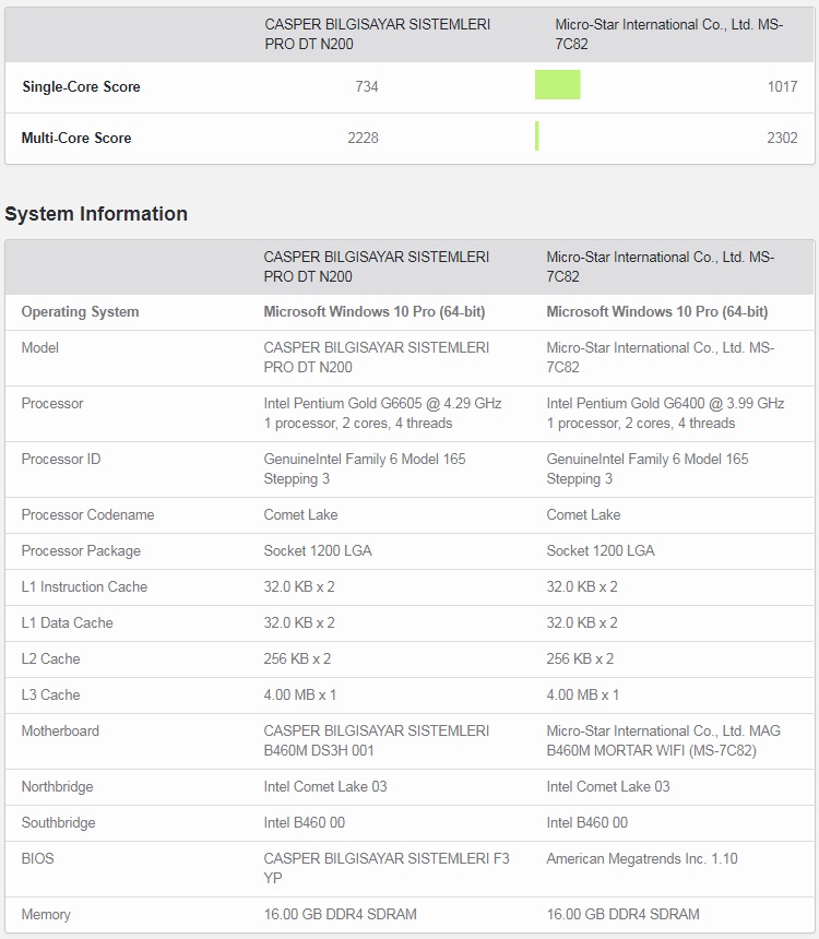 Как известно, Intel намерена представить не только процессоры 11-го поколения, принадлежащие к семейству Rocket Lake-S, но и обновлённые модели поколения Comet Lake-S Refresh, и перед нами как раз один из таких CPU: согласно представленной информации, десктопный процессор Pentium Gold G6605 получил в своё распоряжение 2 ядра/4 потока с тактовой частотой 4,3 ГГц.