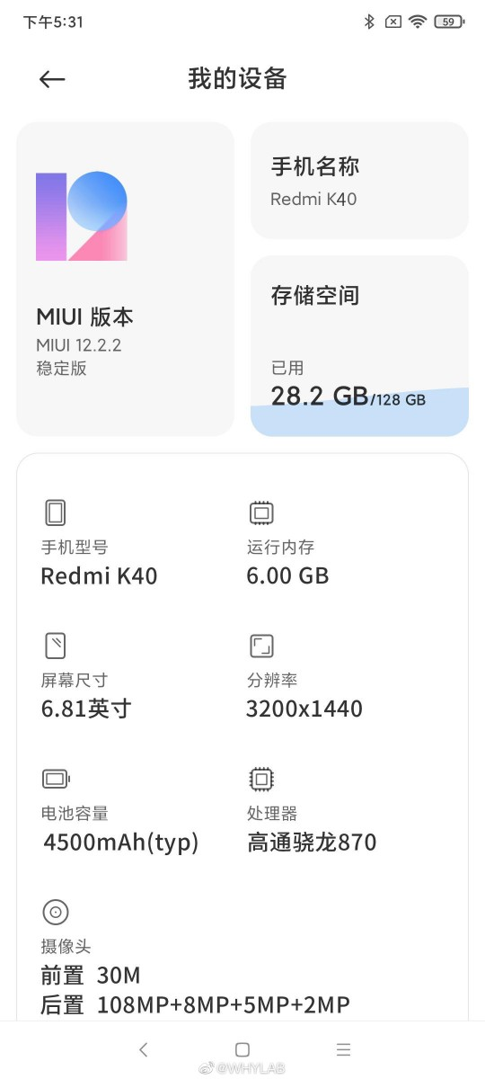 Xiaomi Redmi K40 получит новую фронтальную камеру. Её разрешение составит 30 Мп. Основная камера будет скромной. В её состав войдут главный и ультраширокоугольный модули разрешением 108 Мп и 8 Мп, а ещё два места займут телемакромодуль на 5 Мп и 2-мегапиксельный сенсор глубины.