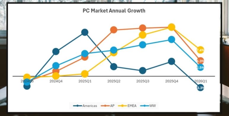 Ухудшение макроэкономических условий и дефицит памяти не помешали рынку персональных компьютеров в начале 2026 года показать рост на 2,5%. Аналитическая компания IDC сообщает, что в первом квартале было выпущено 65,6 млн компьютеров.