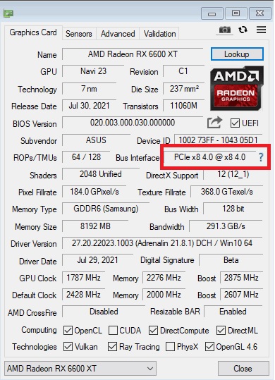 Уже появились первые обзоры AMD Radeon RX 6600 XT и новинка в целом неплохо показала себя по сравнению с конкуренткой NVIDIA GeForce RTX 3060. Но за рамками внимания остались некоторые детали, касающиеся технических характеристик нового графического адаптера. Уже все в курсе, что RX 6600 XT имеет 128-битную шину и 8 ГБ видеопамяти стандарта GDDR6. А вот её интерфейс PCI-Express версии 4.0 ограничен всего восемью линиями, вместо полноценных шестнадцати.