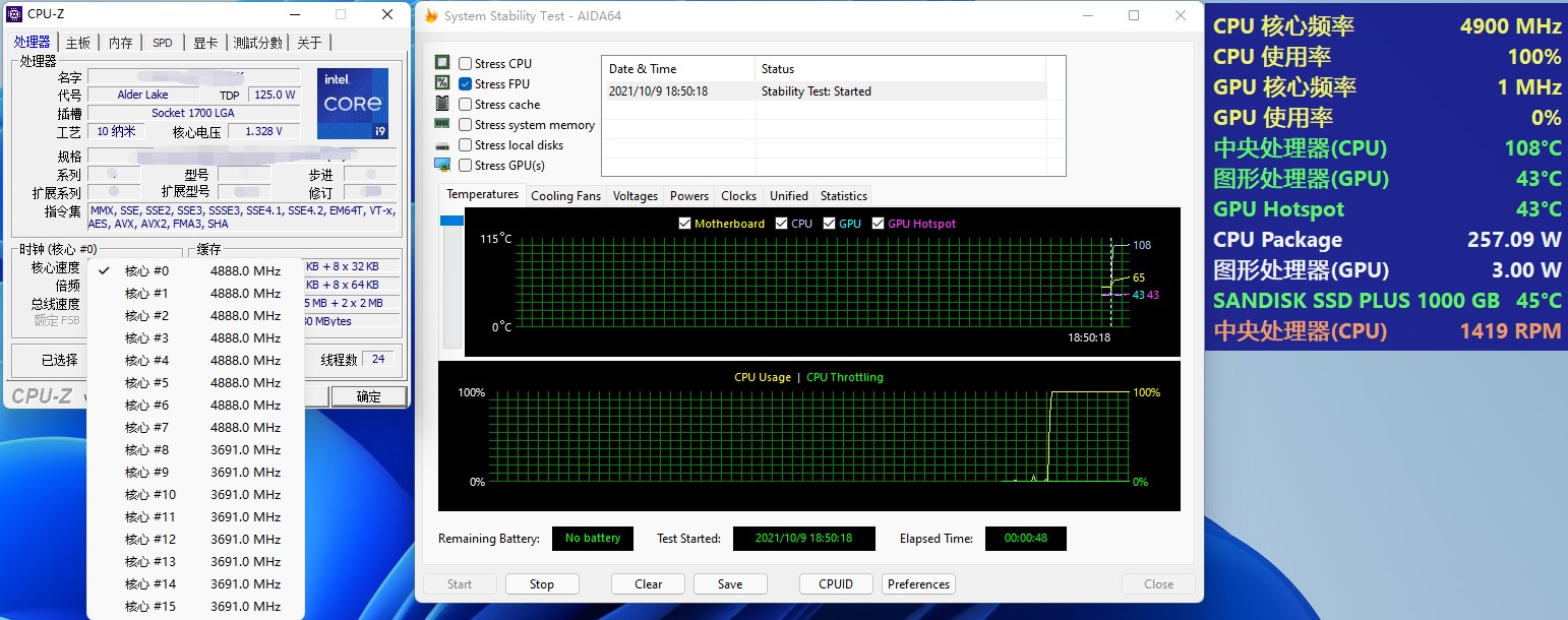 Что касается уровня энергопотребления и температурных показателей Core i9-12900K, то в стресс-тесте с задействованием AVX2 новинка запросила 257 Вт, нагревшись до 108 °C.