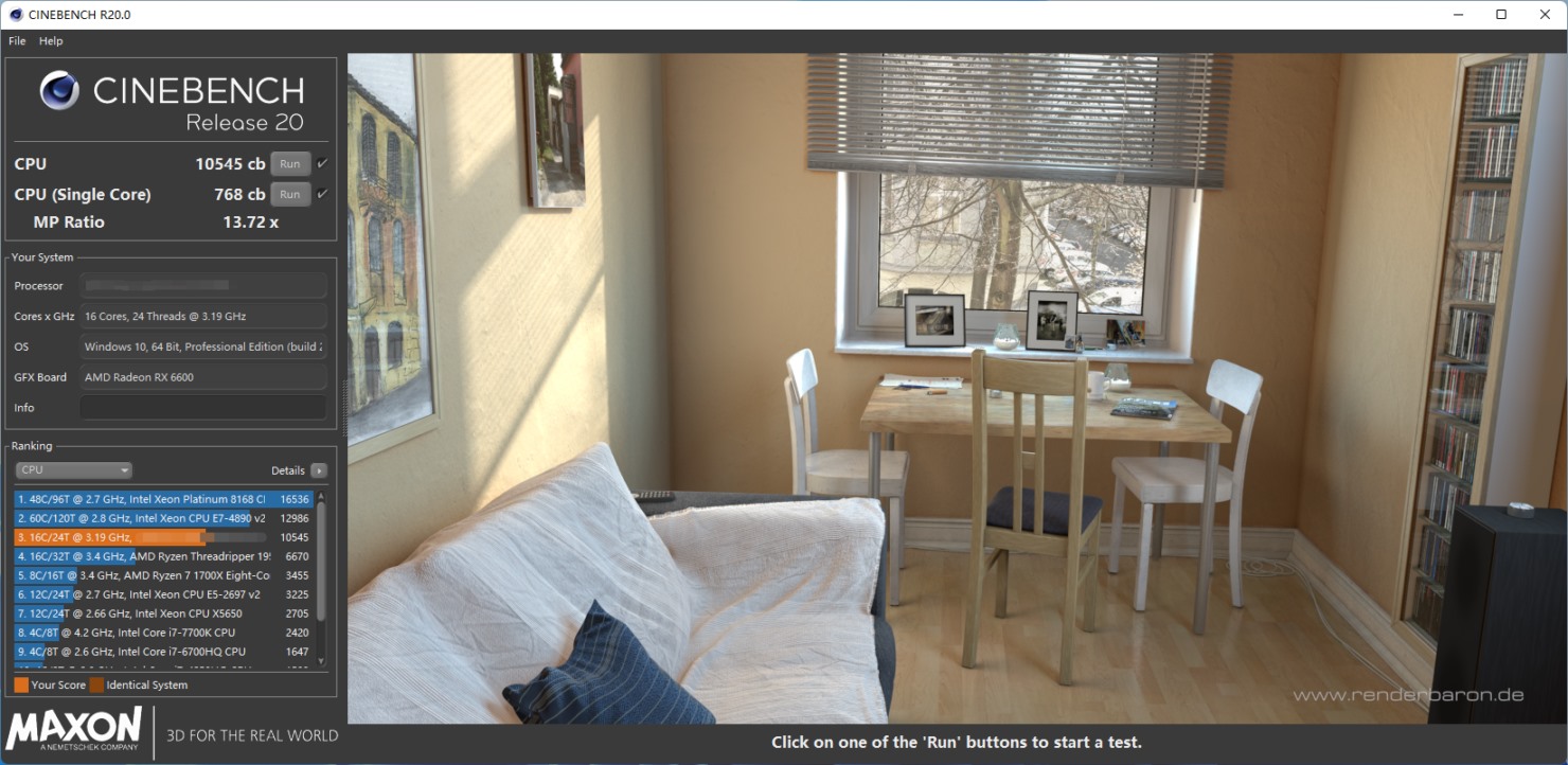 В многопоточном подтесте результаты флагманского представителя семейства Alder Lake-S также достаточно высоки: с показателем в 11456.5 очка 16-ядерная 24-поточная новинка обогнала топовую 8-ядерную 16-поточную модель прошлого поколения на 74.6 %, а от 16-ядерного 32-поточного Ryzen 9 5950X отстала всего лишь на 3.4 %.