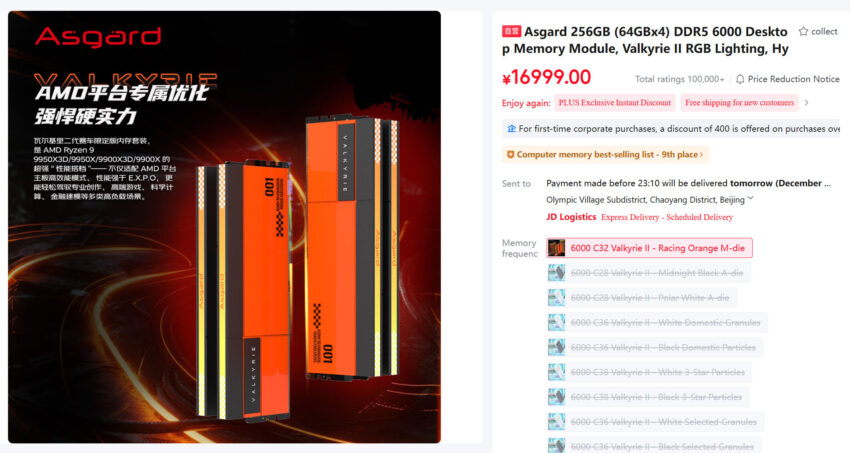 На JD комплект Thor объемом 192 ГБ продается по цене 8599 юаней, что составляет примерно 1200 долларов по текущему обменному курсу. Изначально комплект Valkyrie объемом 256 ГБ продавался по цене 14599 юаней, или около 2060 долларов, но Asgard уже повысил цену до 16999 юаней, или около 2400 долларов.