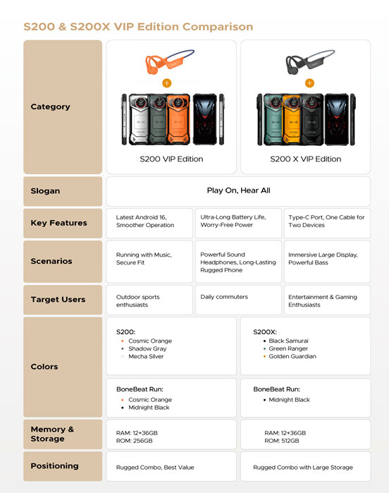 Поступив в продажу, защищённые смартфоны серии DOOGEE S200 привлекли к себе внимание любителей активного отдыха и технологий. Их сильной стороной являются как уровень прочности, так и эффектность внешнего вида. Закрепляя успех, компания DOOGEE начинает продажи новых моделей защищённых смартфонов S200 VIP Edition и S200 X VIP Edition. Они получили увеличенный объём хранилища и повышенную производительность. Отличительной чертой новинок можно назвать совместимость с наушниками BoneBeat Run с костной проводимостью звука. Это делает их ещё более интересными для любителей активного отдыха.