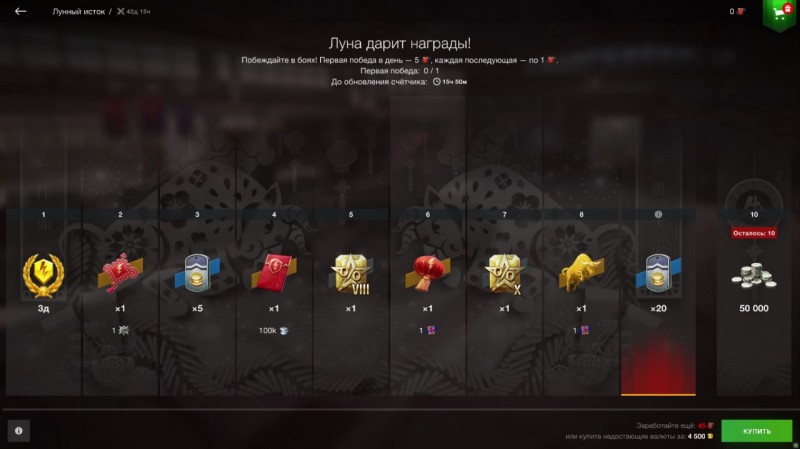 World Of Tanks Blitz опередил старшего брата и уже начал ивент приуроченный к китайскому новому году, в танках на ПК ожидается ивент “Лунная охота”, но стартует ивент только лишь 12 февраля в 9:00 по МСК, а вот мобильные игроки уже могут начать выполнение ивента “Лунный исток”, хоть награды в ивенте не очень, но и усилий на выполнение его почти прикладывать не нужно, также можно ожидать китайских танков в спец.предложениях за деньги, и золото. Одно из таких предложений уже есть, варгейминг предлагает купить Type 59 и Type 62 за 8000 золота, что очень даже выгодно, 2 фармящих премиум танка 7 и 8 уровня.