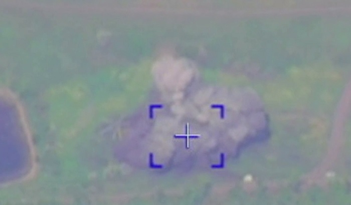 Наблюдая за ходом видео можно увидеть, как атака с воздуха заканчивается мощными всполохами пламени и дыма, а сама дамба «неожиданно» расходится. Предположительно удар был нанесен, как пишет ТГ-канал «Рыбарь» авиационным боеприпасом Х-38.