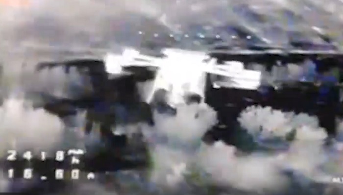 Наблюдая видеокадры, четко виден периметр командного пункта, по расположения которого и заметен момент прилёта. После удара ракеты, выпущенной из 9К720, произошла детонация боевой части, а в районе попадания в небо поднялся густой дым.