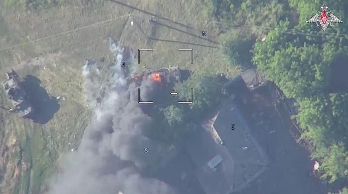 Ракетный удар ОТРК «Искандер-М» застиг врасплох старших офицеров 22-й отдельной мехбригады украинской армии, принявших участие в приграничном рейде на курский регион. Кадр самого удара попал на видео, снятое разведывательным беспилотником с установленным длиннофокусным объективом. Соответствующее видео предоставила пресс-служба отечественного МО.