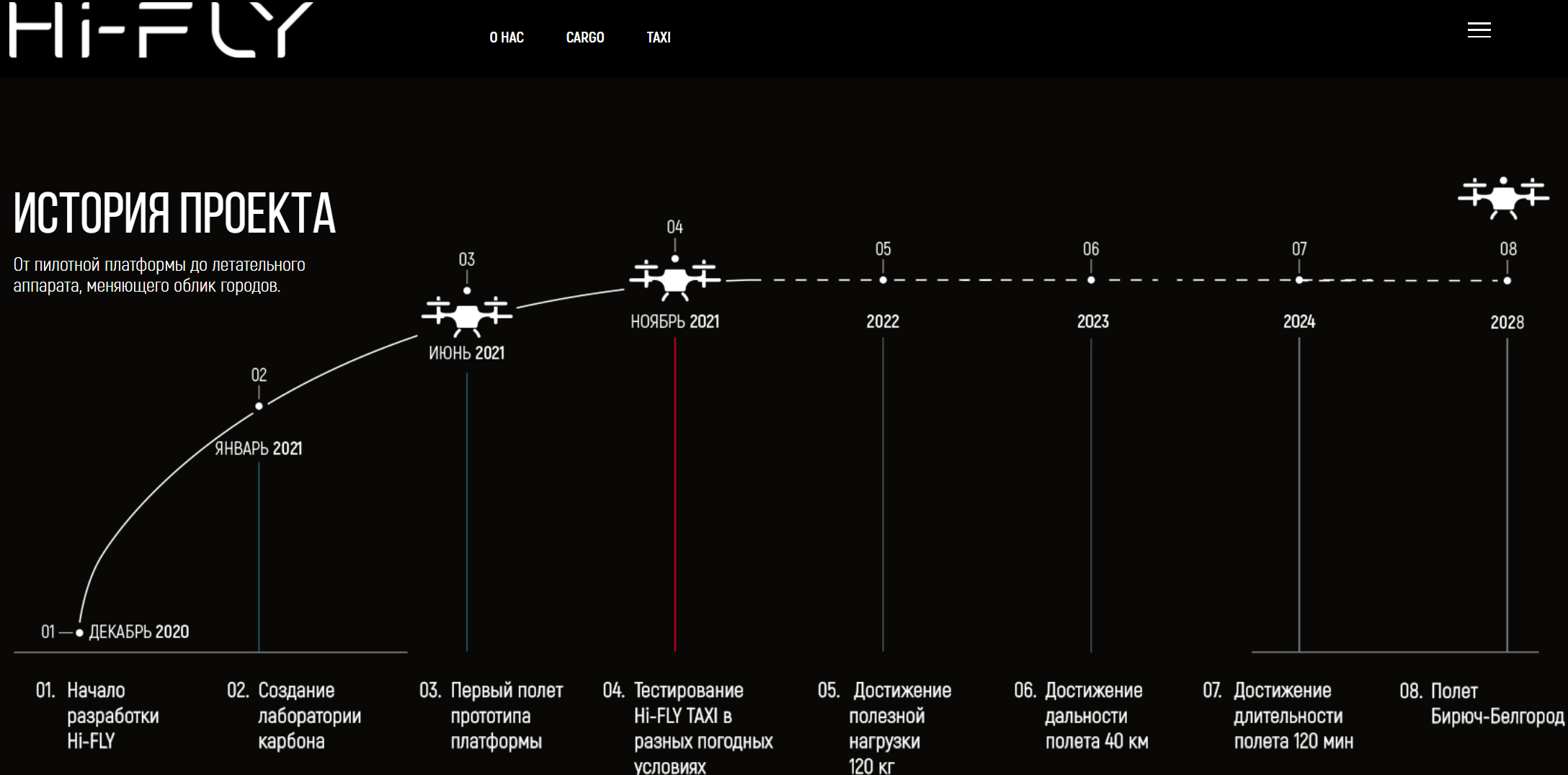 Стоит учитывать, что указанные выше характеристики верны исключительно для прототипа, в то время как полностью готовый к полётам аппарат сможет развивать скорость до 300 км/ч, получит запас хода до 600 километров и окажется способен нести груз до 220 килограмм. В планах старт коммерческого выпуска беспилотных автономных летательных средств на 2024 год. Инженеры Эфко представили предварительные планы по выходу на те или иные этапы, с которой можно ознакомиться выше.