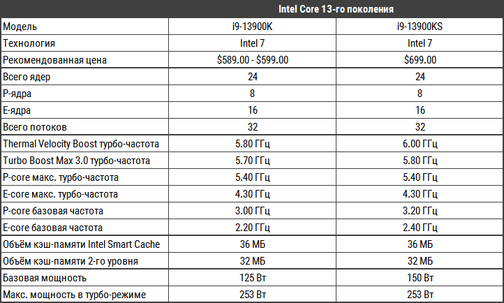i9-13900KS - это обновленная версия i9-13900K, который Intel выпустила прошлой осенью. Основные различия между двумя процессорами заключаются в том, что старый чип достигал максимальной скорости 5,8 ГГц и имел меньшую базовую мощность - 125 Вт по сравнению со 150 Вт у нового чипа. Однако i9-13900KS имеет такое же количество ядер (24), объем кэша (36 МБ) и количество линий PCIe (20), как и i9-13900K. Кроме того, новый процессор совместим с материнскими платами Z790 и Z690, однако рекомендуется обновленный BIOS.