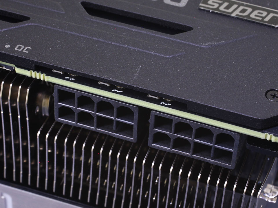 На видеокарте установлено два 8-контактных разъема питания. Система питания рассчитана на мощность до 375 Вт.