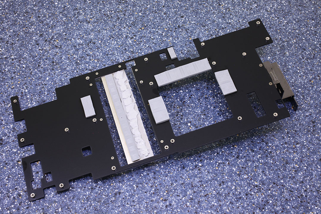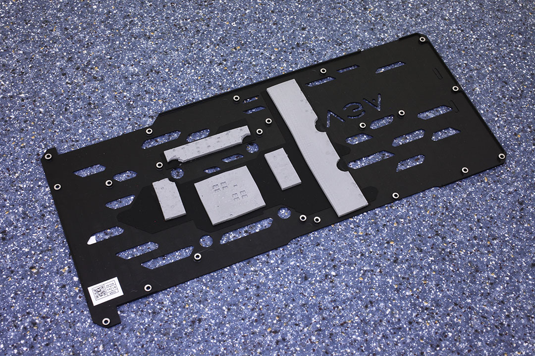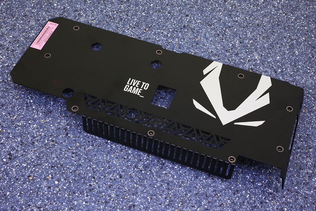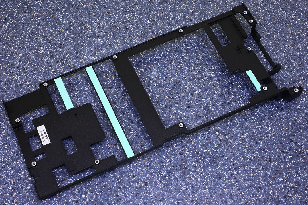 Бекплейт изготовлен из металла. Термопрокладки передают тепло на бекплейт от VRM, памяти и графического процессора.