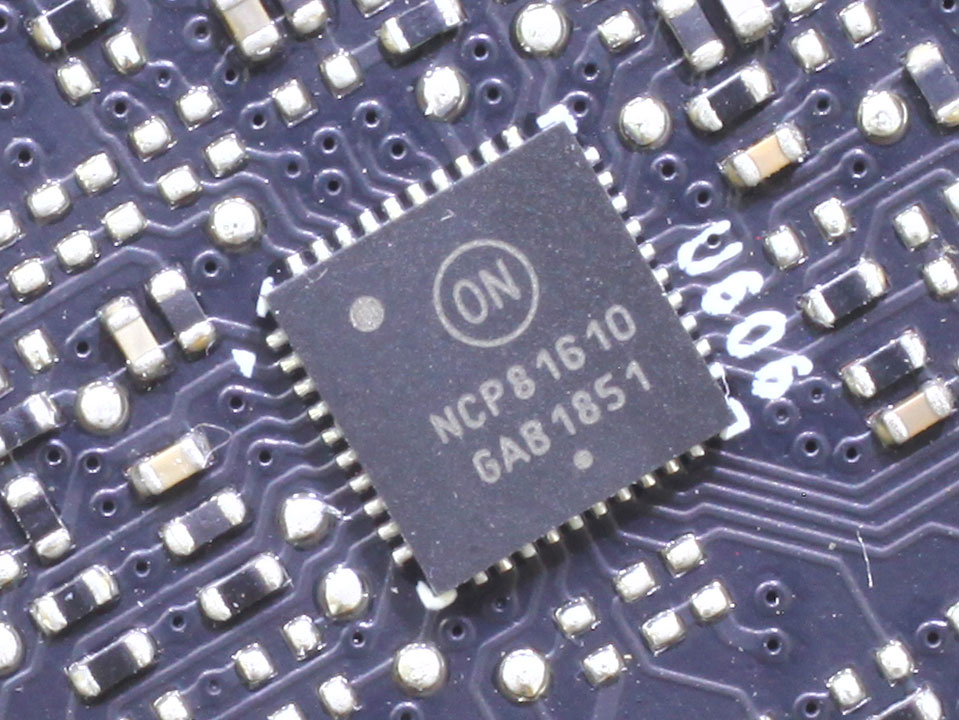 Производитель использует двенадцать фаз питания для графического процессора, под управлением контроллера OnSemi NCP81610.