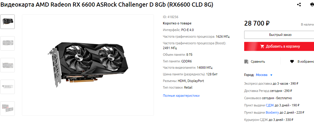 Для народного разрешения подойдёт Radeon RX 6600. Эта видеокарта получила 8 Гб видеопамяти и отличается не только высокой производительностью, но и не предъявляет дополнительных требований к питанию. В последнее время мы привыкли к тому, что мощная видеокарта обязательно нуждается в блоке питания на 650 Вт и выше. Radeon RX 6600 будет работать даже на старом системном блоке, где комплектующие прибыли прямиком из подвальчика дядюшки Ляо.