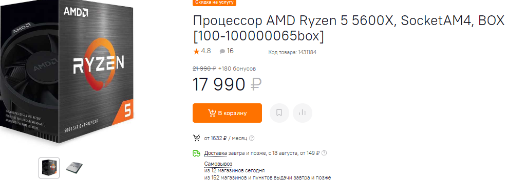 Ryzen 5 5600X вообще позволяет собрать компьютер для любых нужд, но также он неплохо себя зарекомендовал в ленивой сборке. Берём материнскую плату на чипсете А320, а после наслаждаемся работой современного камня без переплат. При желании можно заменить Ryzen 5 5600X на любой совместимый процессор, который уже давно не справляется со своими задачами. Например, на Ryzen 3 1300Х.