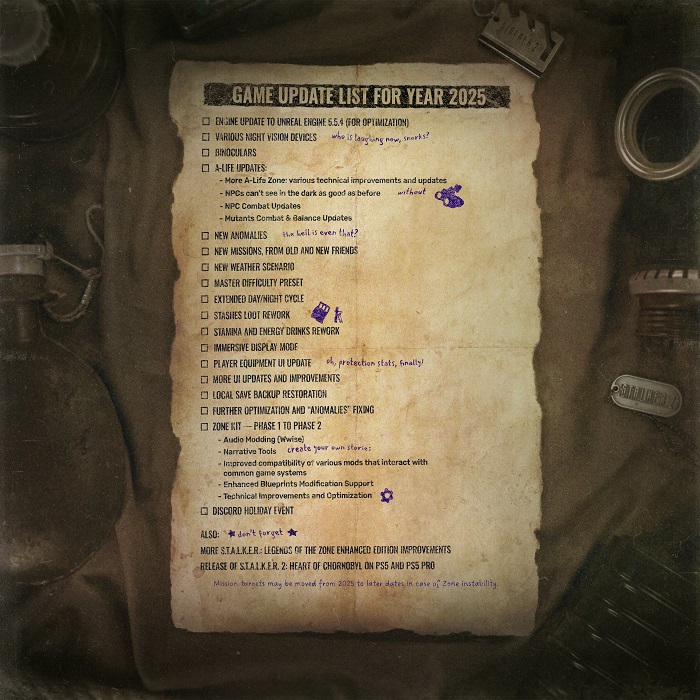 Как сообщили создатели игры, до конца текущего года S.T.A.L.K.E.R. 2 ждёт обновление движка Unreal Engine 5 до версии 5.5.4, которая решит ряд оставшихся проблем с оптимизацией. Также в игре наконец-то появятся бинокли и приборы ночного видения (ПНВ), которые геймеры, учитывая местную работу освещения, просят с самого релиза.
