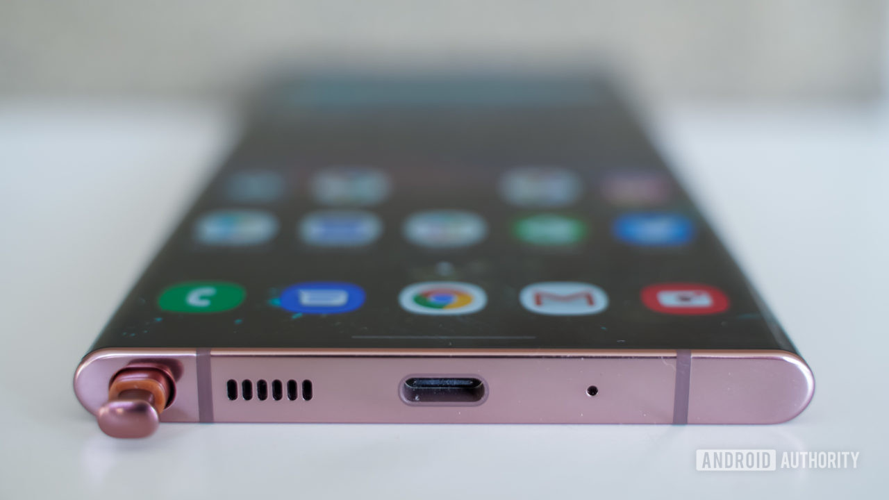 Новинка является первым в мире девайсом, защиту внутренностей которого обеспечивает новое стекло Gorilla Glass Victus. Водонепроницаемый корпус (IP68) имеет габаритные размеры 164,8 x 77,2 x 8,1 мм. Весит устройство более 200 граммов. Южнокорейская компания уже давно отказалась от разъёма для наушников, но одно отверстие в корпусе всё же имеется. В нём хранится фирменное электронное перо S Pen с 9-мс задержкой и поддержкой Bluetooth.